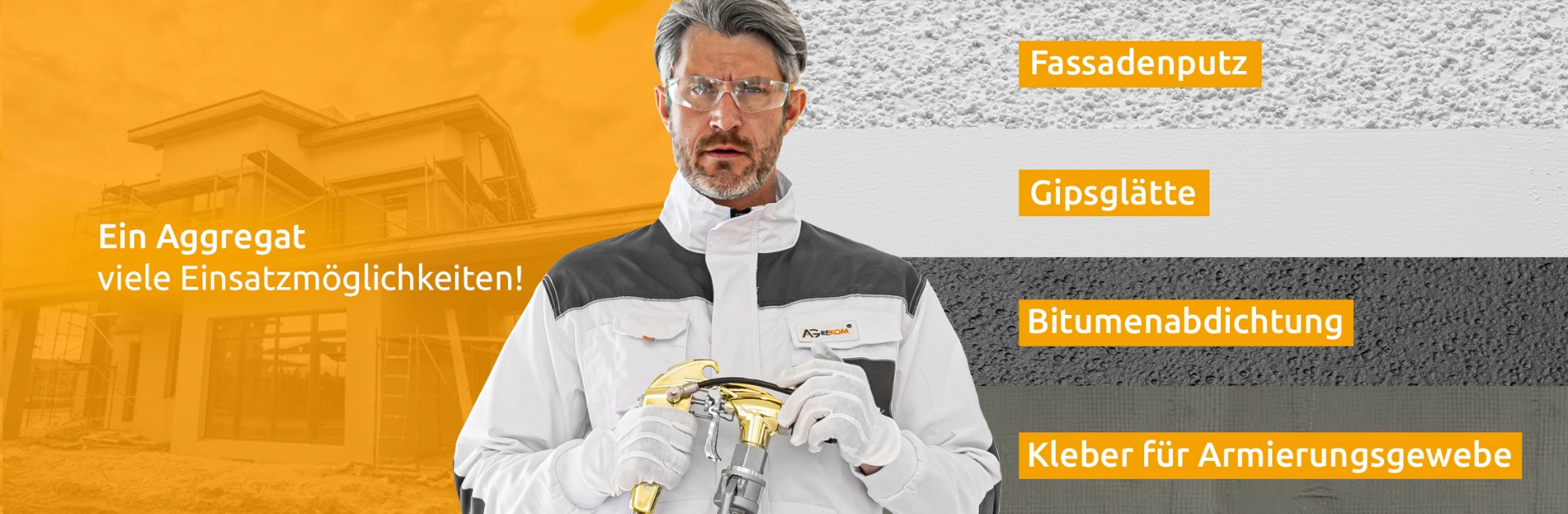 Wir sind ein Hersteller von Sprühsystemen für Verputz-, Feinputz- und Malerarbeiten. Wir garantieren eine hohe Qualität in der Ausführung und die perfekte Anpassung an die schwierigen Bedingungen auf der Baustelle. Unsere Geräte ermöglichen es, die beim Bauen oder Renovieren anfallenden Arbeiten deutlich zu beschleunigen.