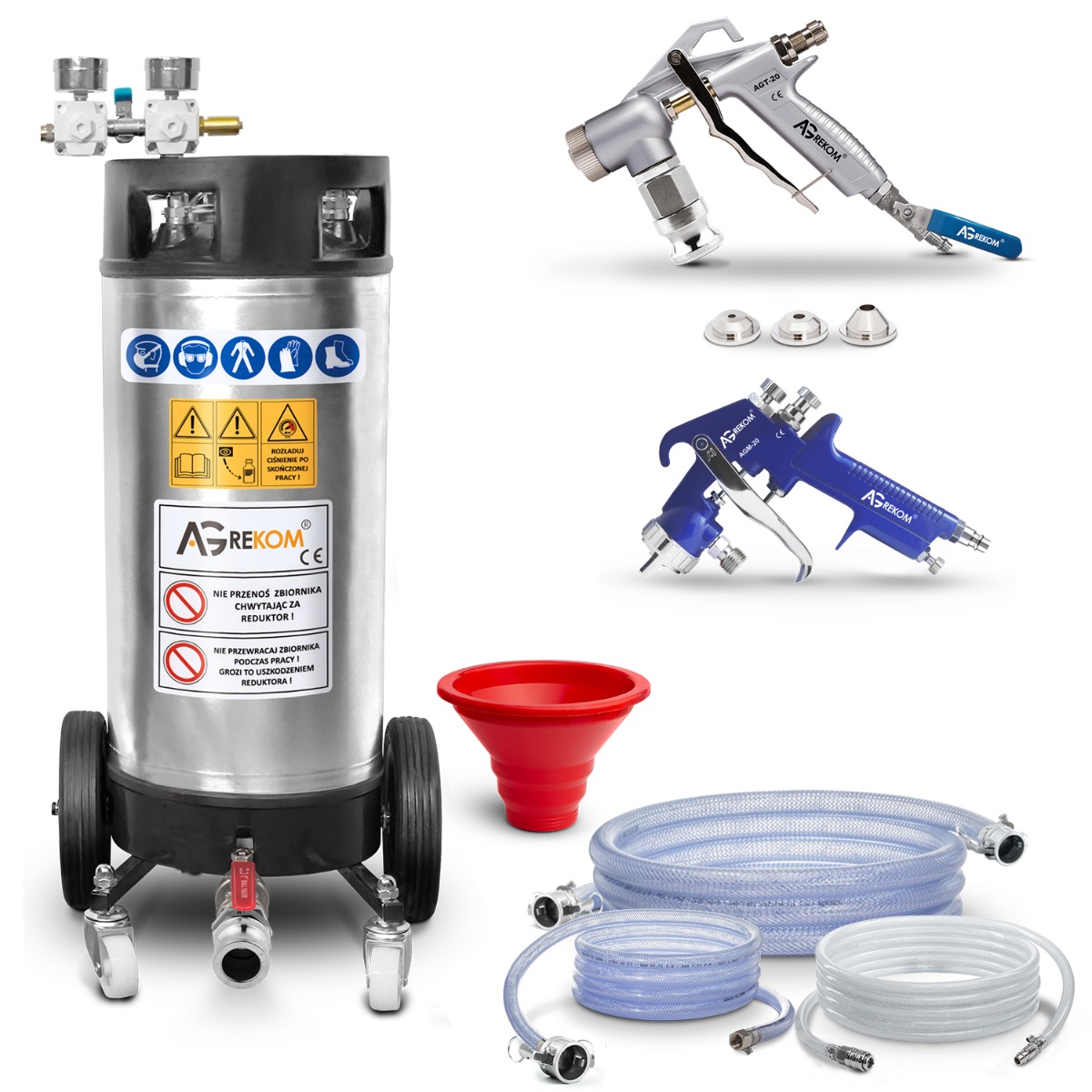 Zum Lieferumfang gehören zudem Sprühpistolen für Maler- und Verputzarbeiten.